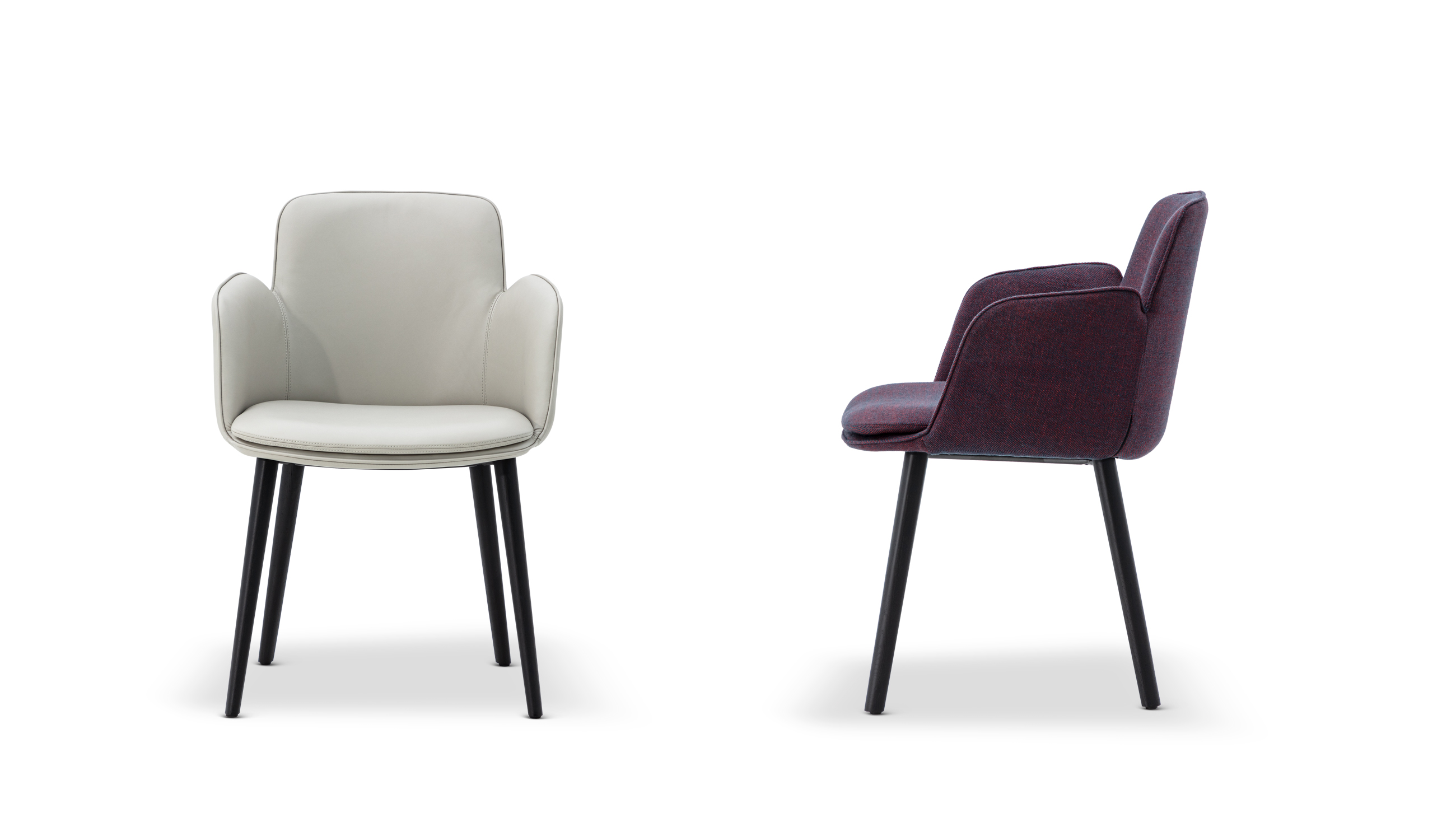 With a familiar silhouette, the WING chair, from Italian design studio Favaretto & Partners, offers thoughtful comfort and understated style. Padded cushions and contemporary curves are ready to embrace, while piping highlights gentle contours that invite relaxation. The chair is mounted on slim but sturdy, oval-shaped wood legs, or crossed metal legs, which finish the look with a touch of elegance.
