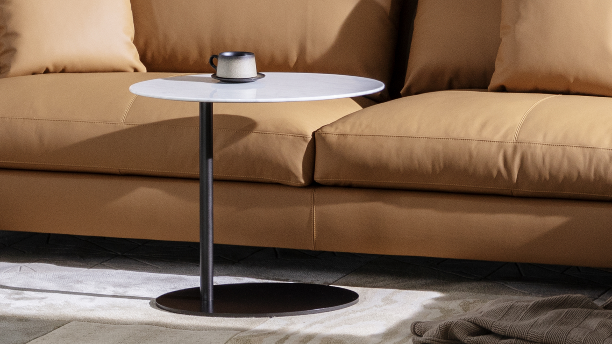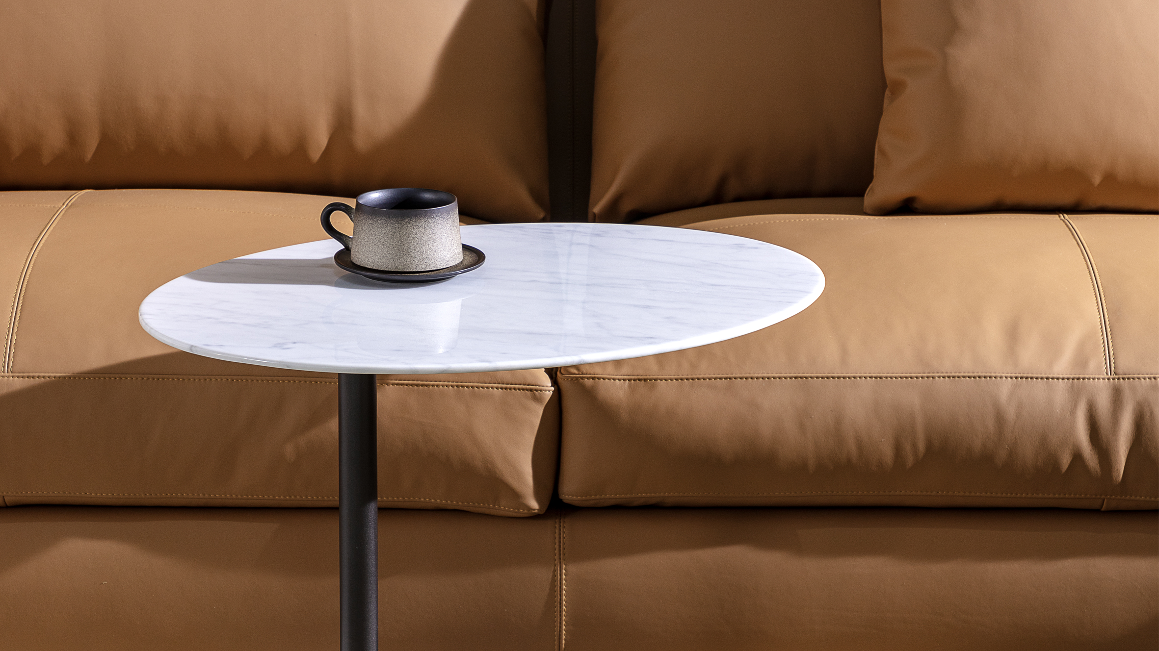 Pebble-shaped surface not only reflects a touch of modern design, but also allows the coffee table to extend above any sofa pad for convenient use.