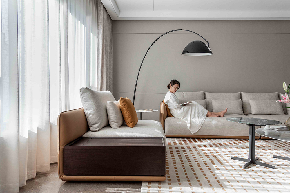 客厅里的“ELAN依澜沙发”承载起空间的主角,