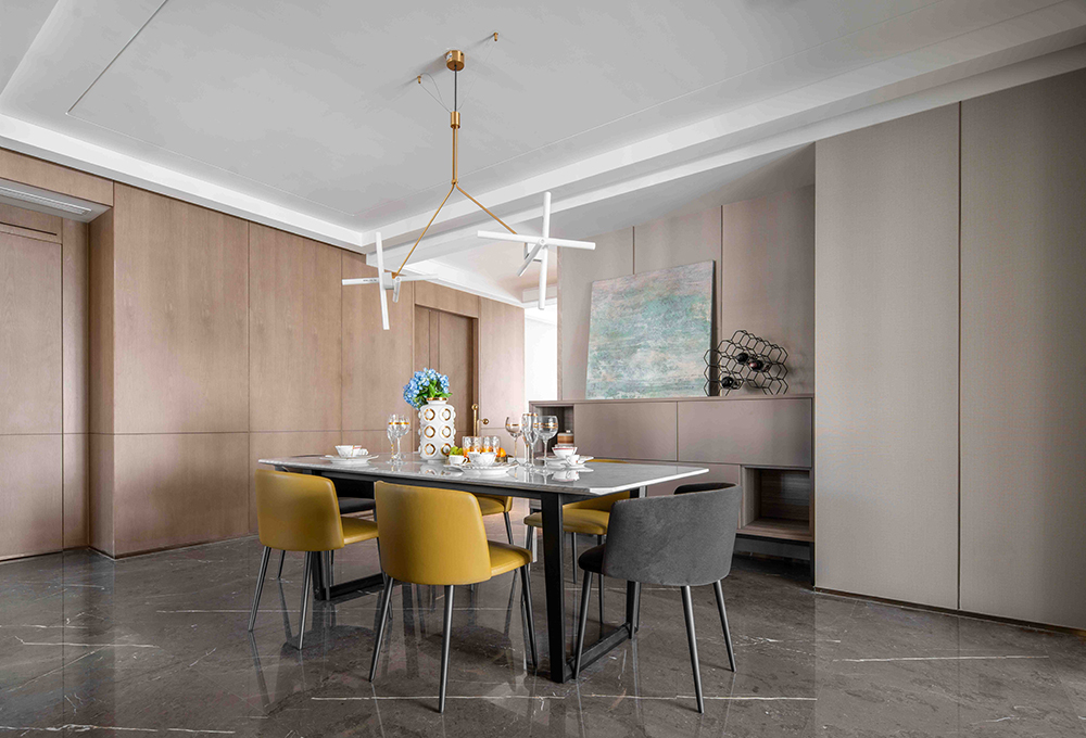 餐厅里轻巧的“BALLET芭蕾椅”围绕在餐桌前,