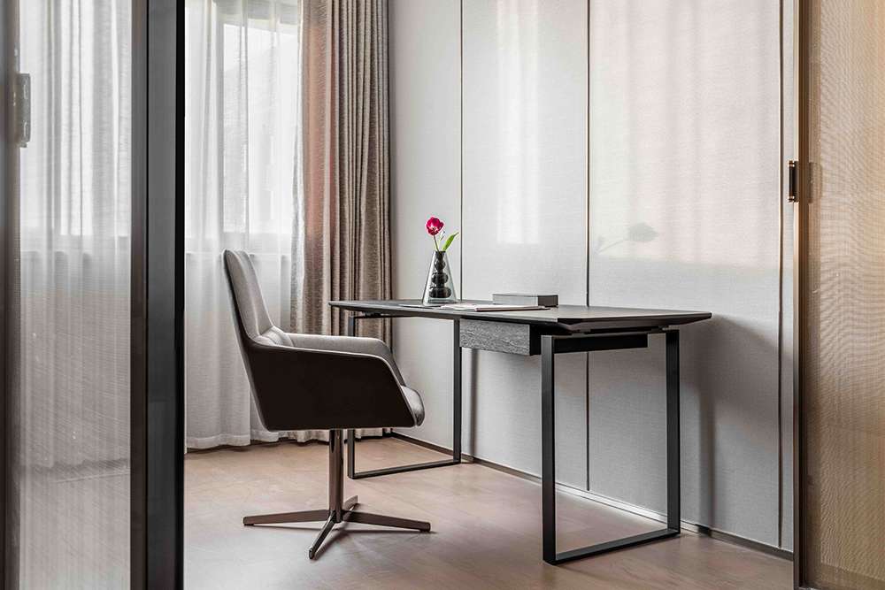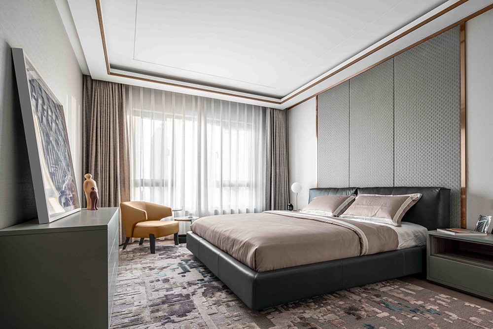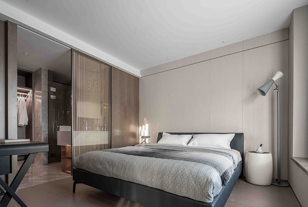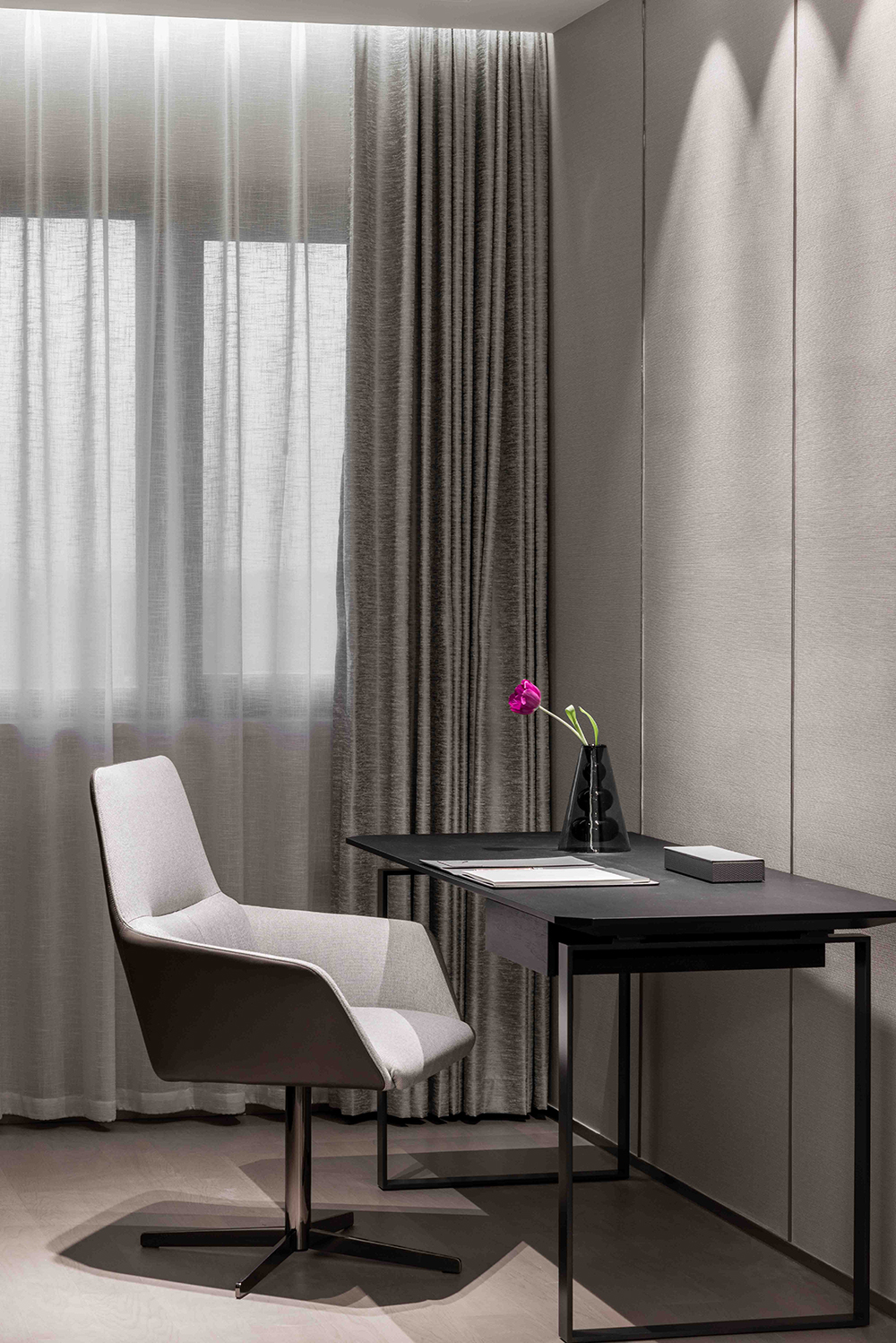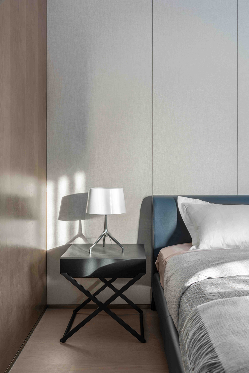 灰色织物的软包设计,让整个空间静谧而安宁。
