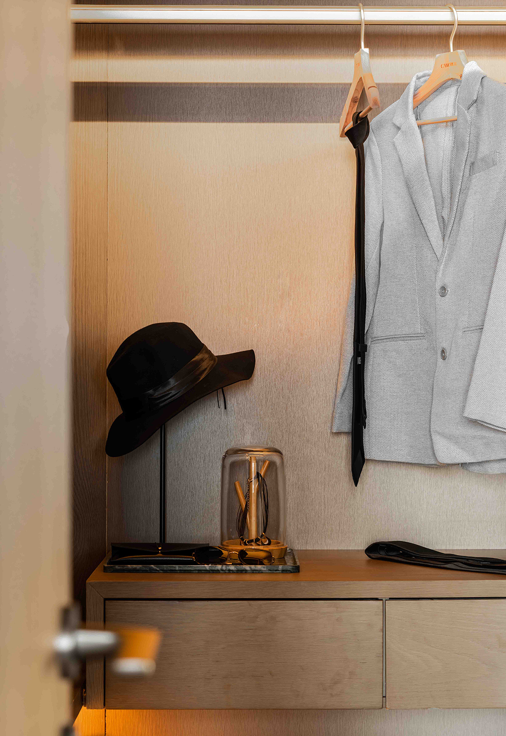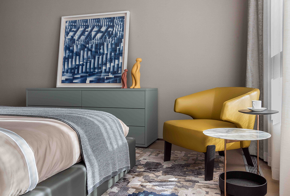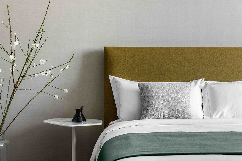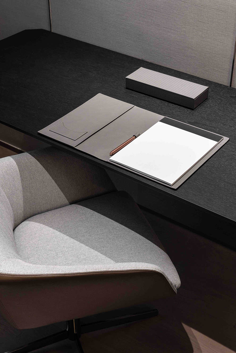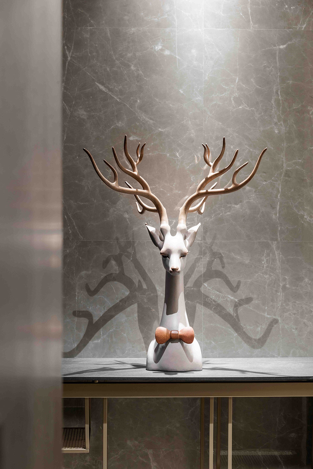 灰色织物的软包设计,让整个空间静谧而安宁。