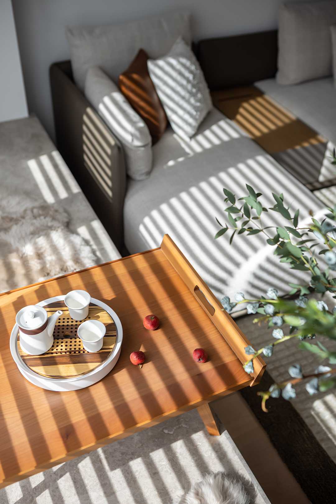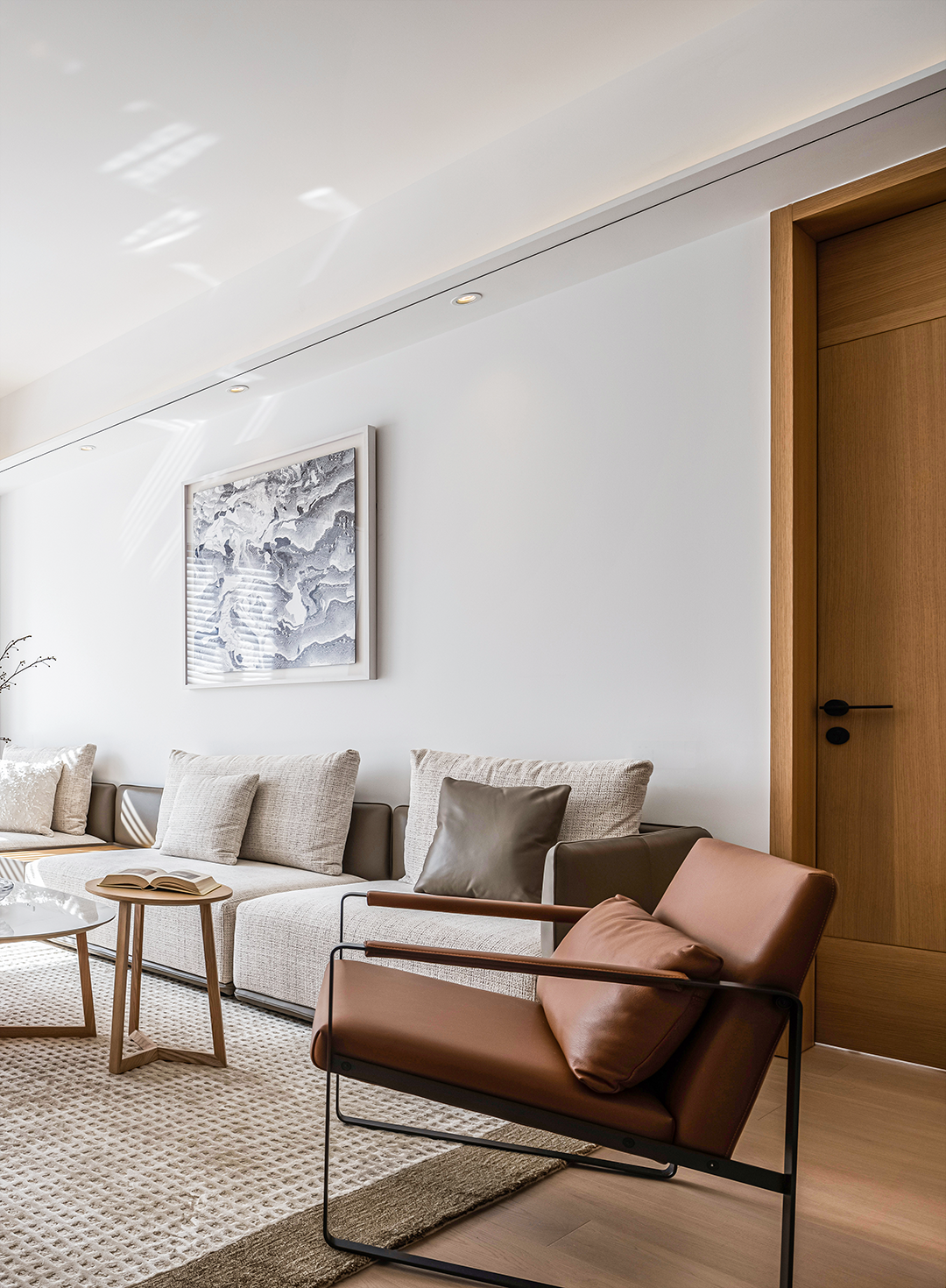 本案的设计理念与阿尔瓦·阿尔托所倡导的回归本质、回归自然的设计理念异曲同工,设计师将简洁静美的木色注入空间,让家摒弃了繁芜,回归素雅。