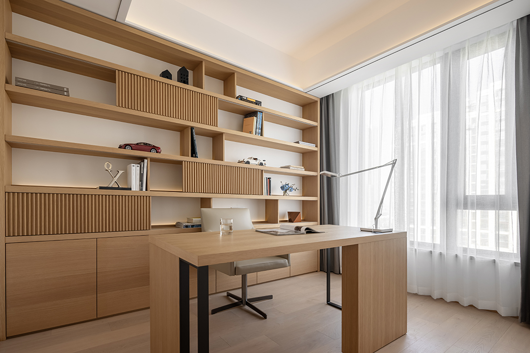 书房沿用了木质元素,保持了空间静逸清雅的氛围感,以简单的方式去传达高品质的生活态度。