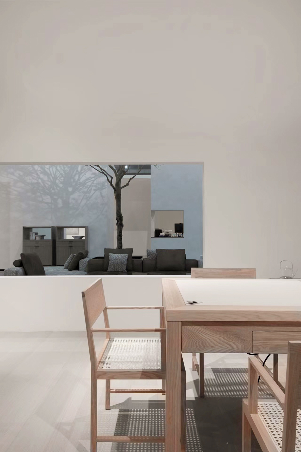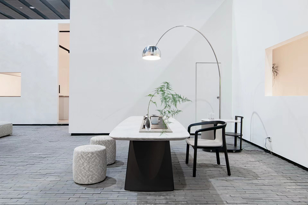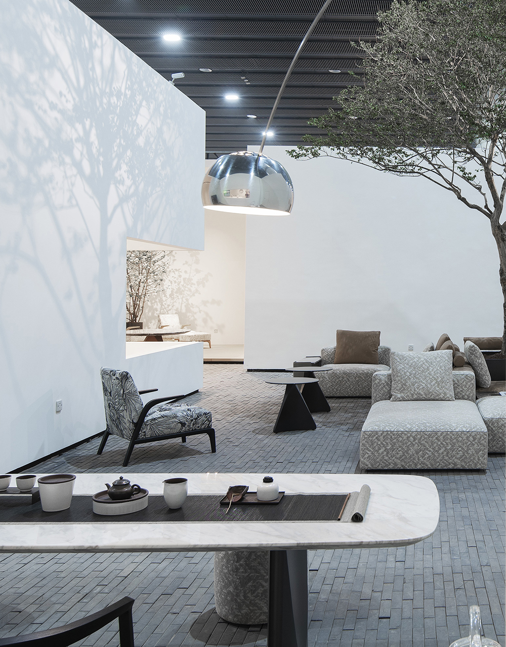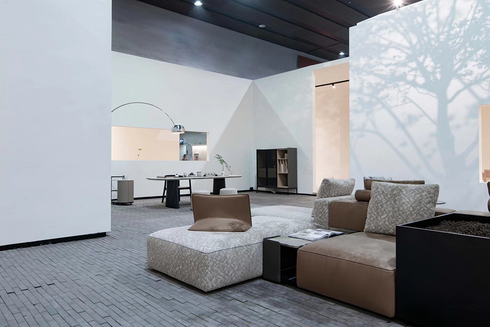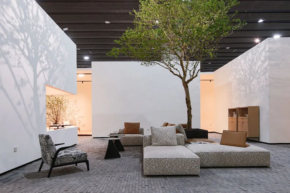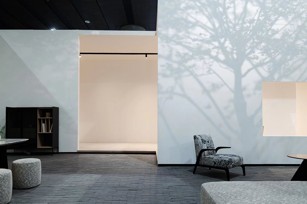此次锐驰展厅,以「“合”之内外」为主题。锐驰基于中国园林、合院文化,对现代家居情境的思考,在空间序列中营造层次和变化,拉近人与自然的距离,诠释出探寻生活本质及人文意境的现代合院。