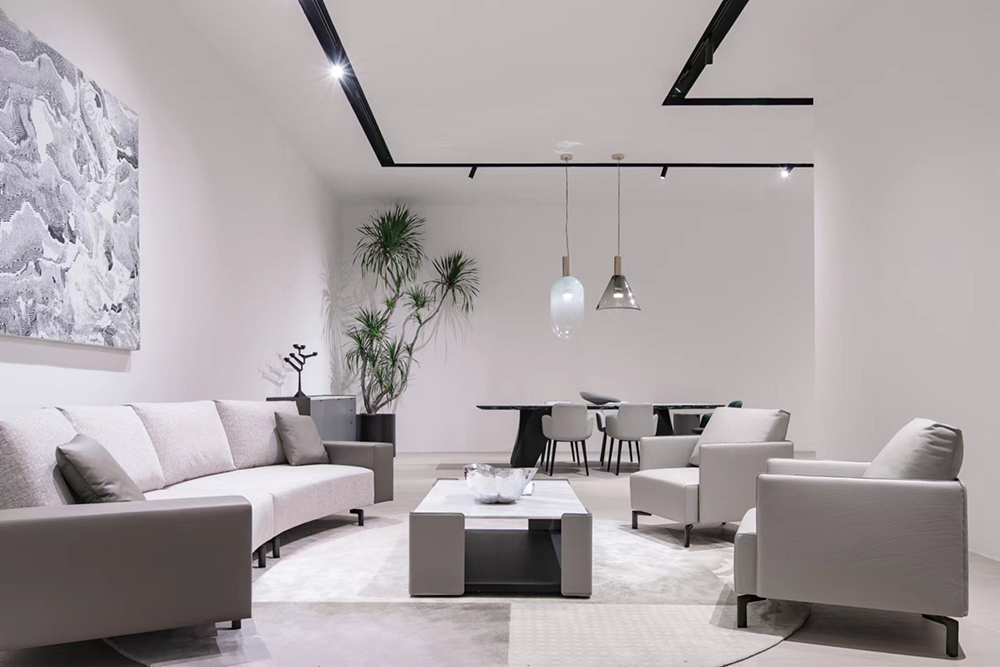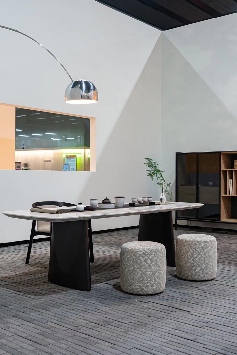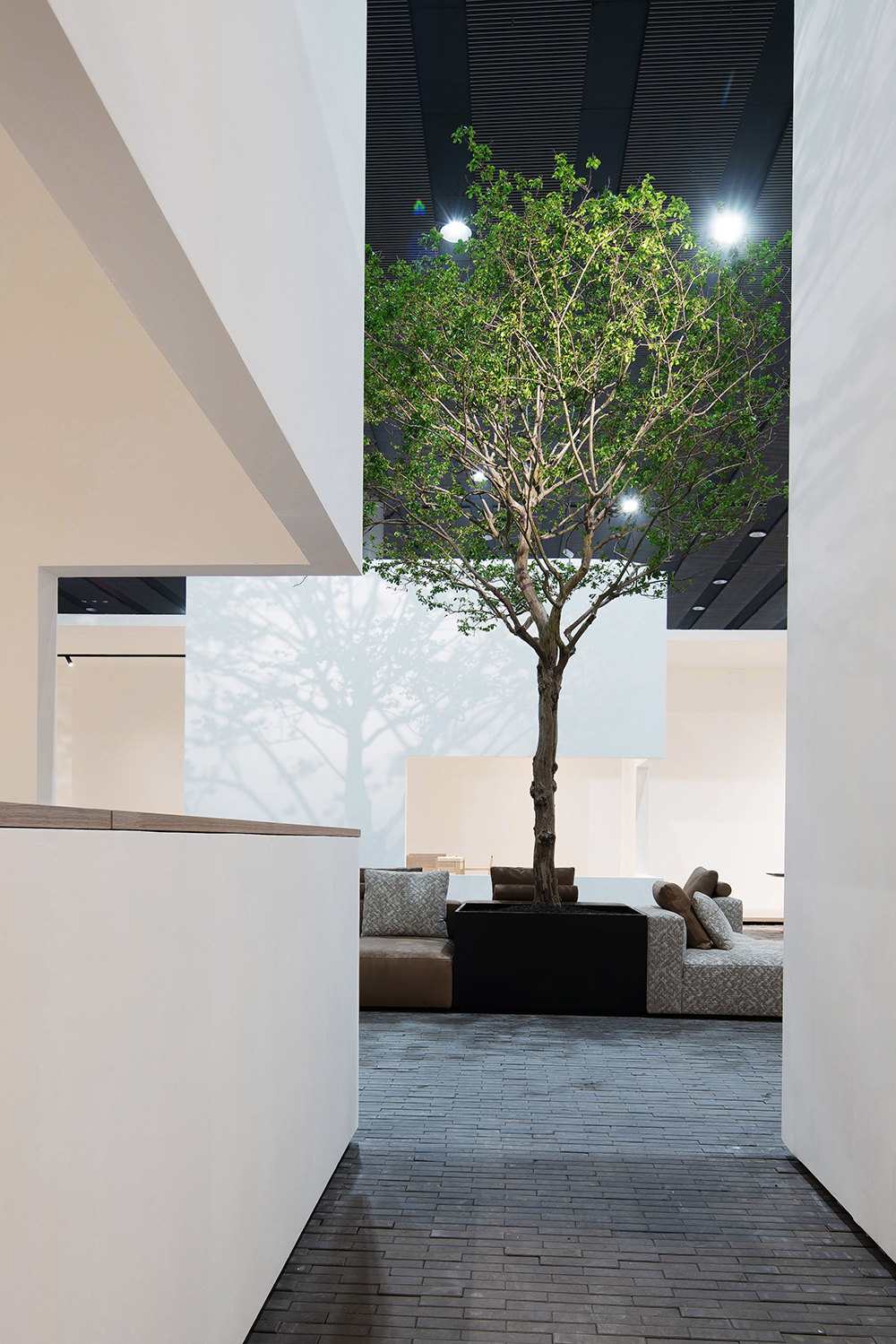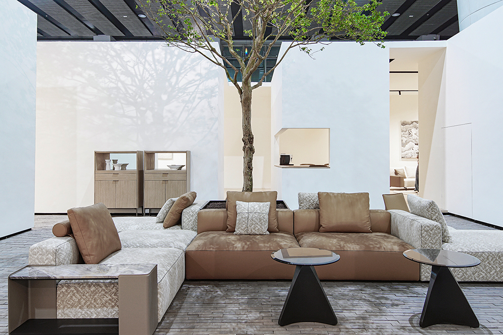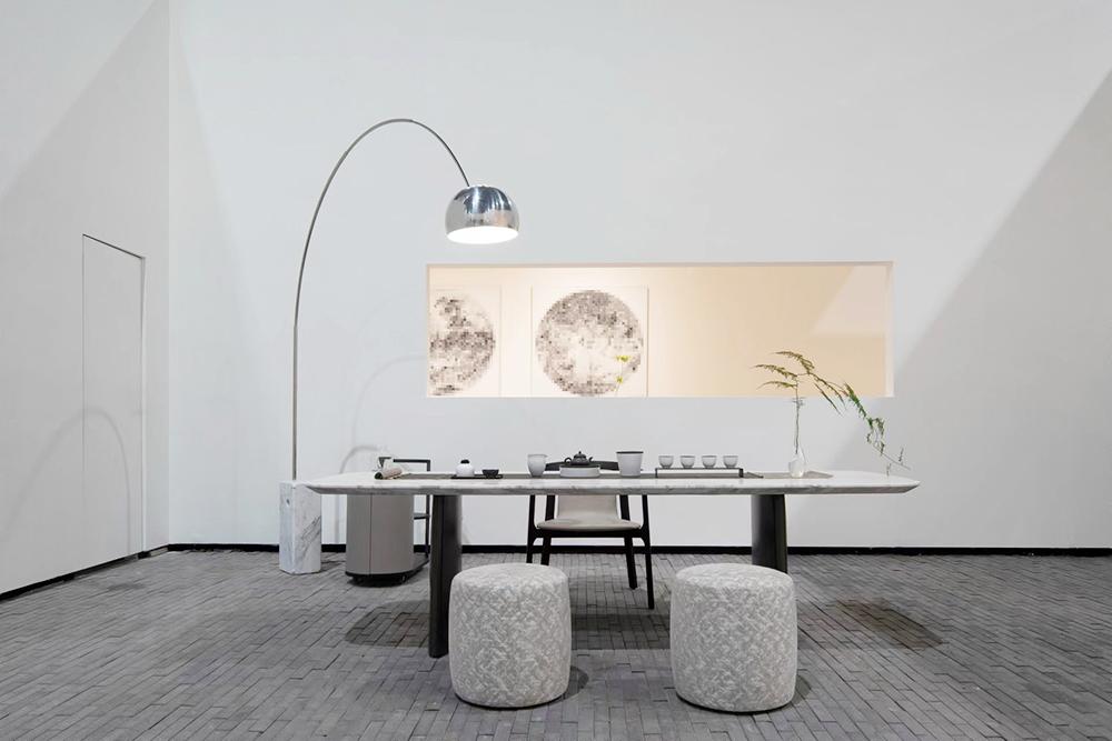 此次锐驰展厅,以「“合”之内外」为主题。锐驰基于中国园林、合院文化,对现代家居情境的思考,在空间序列中营造层次和变化,拉近人与自然的距离,诠释出探寻生活本质及人文意境的现代合院。
