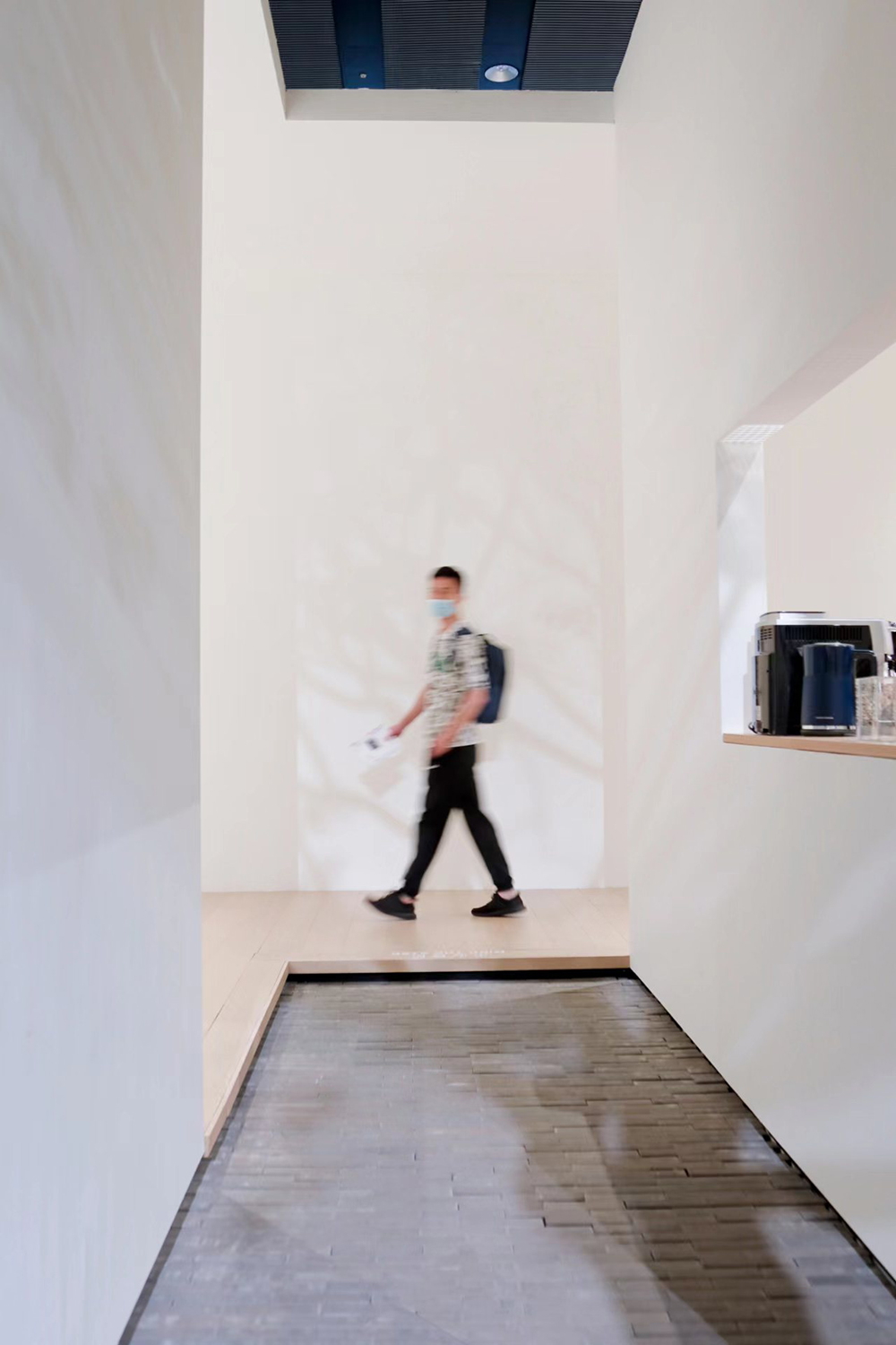 清风杨柳芊,院庭四合间。锐驰展厅大面积的空间留白,透露着纯粹与平和;室外的青砖仿佛凝固住了流动的时光。