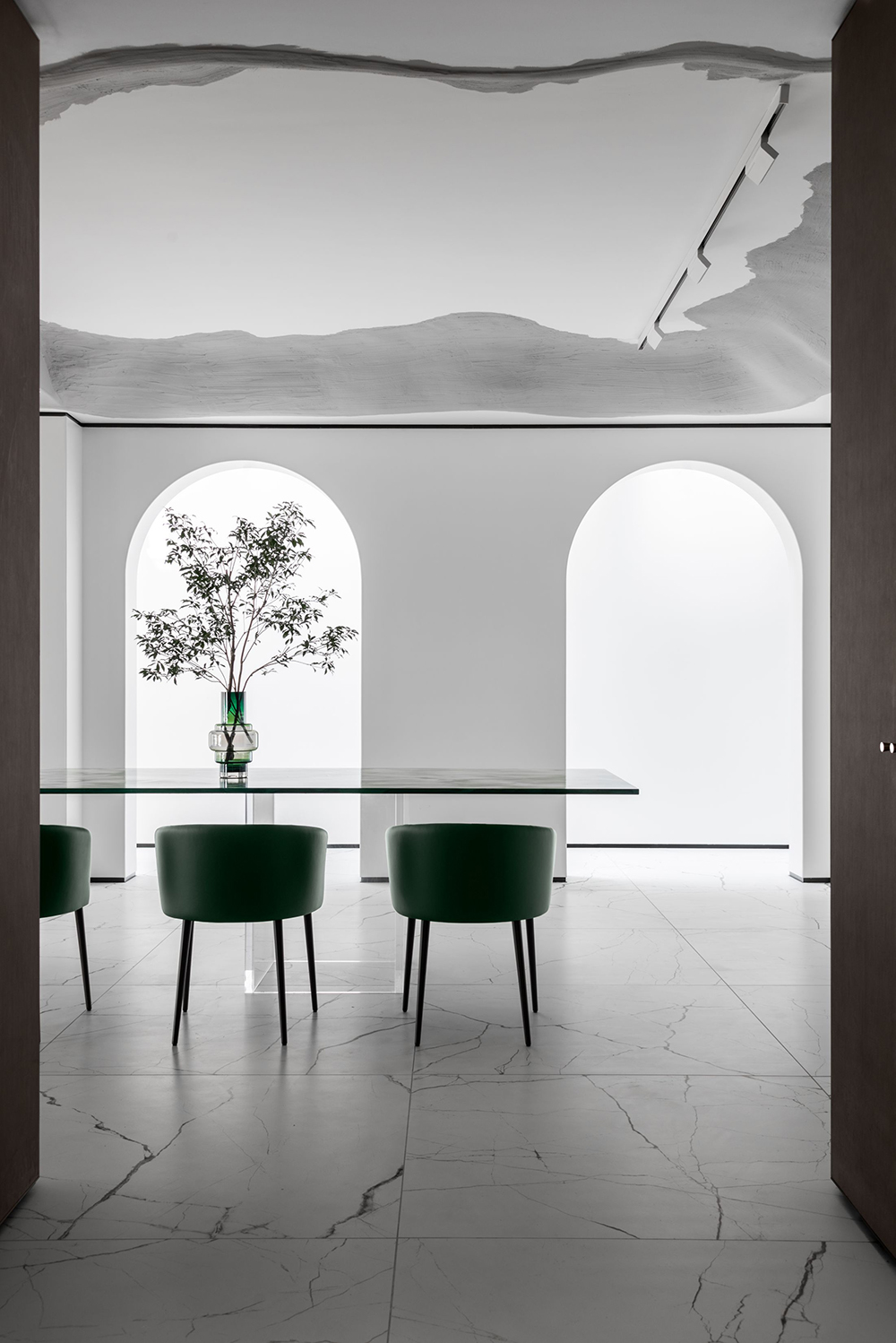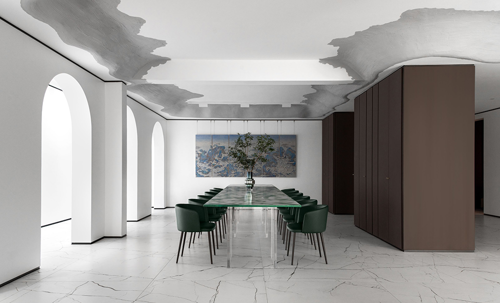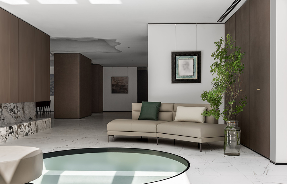 艺术是生活的镜子,结合着智识、修为、敏感的心灵、锐利的洞察,照见人们内心的情感所向。而这间私宅中的一切都是可以持续探索的,就像设计师刻意打磨的内凹型天花,不规则的流动线条,串联起整个家宅空间,寓意着能量的延续感。