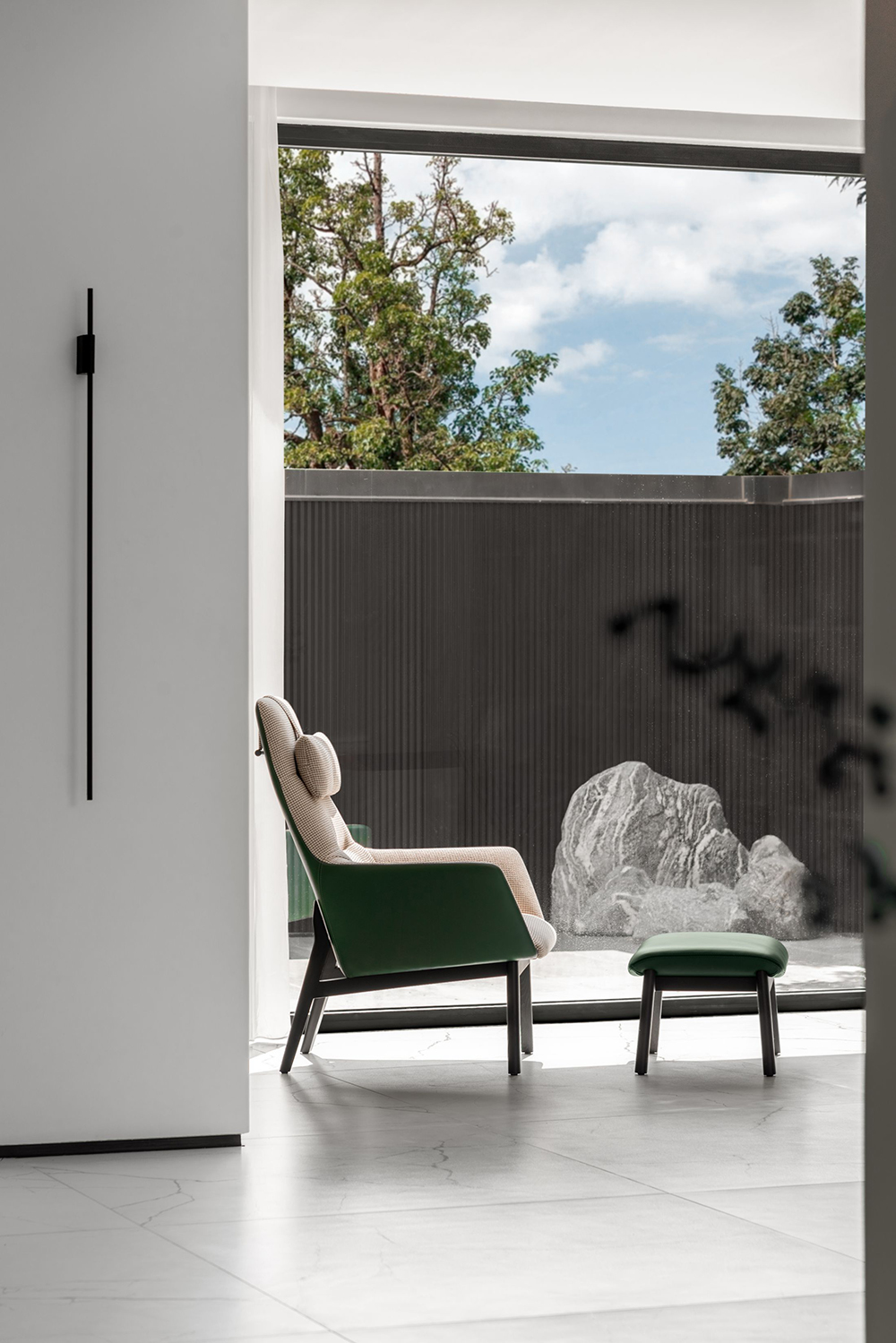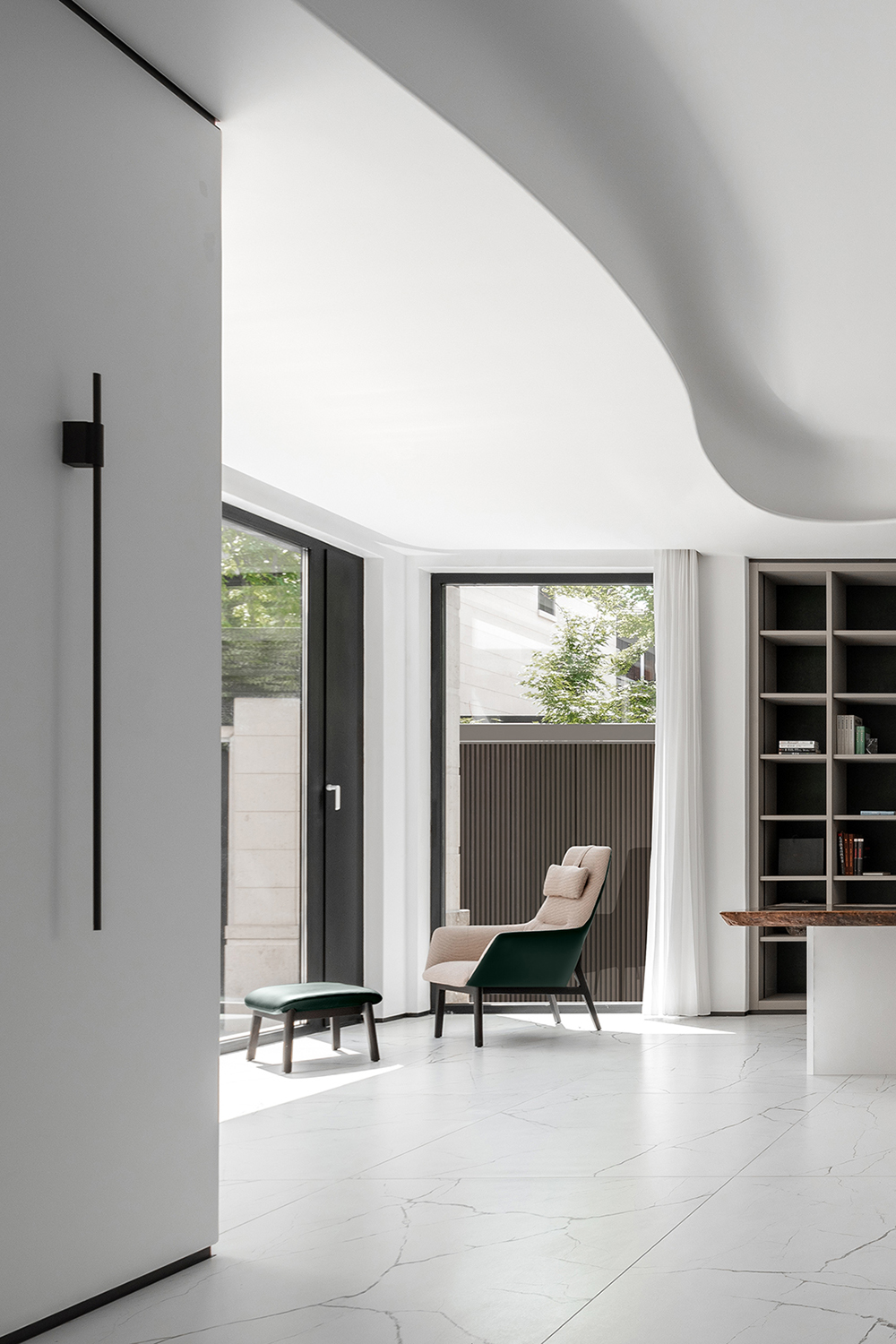 设计师更是细致到将每扇落地窗都留有边窗功能,打开细长的一条,便有微风涌动,在家宅空间中形成舒适安心的能量。