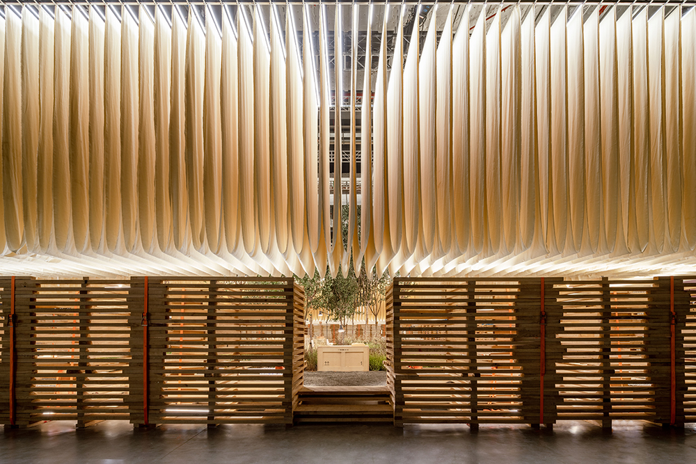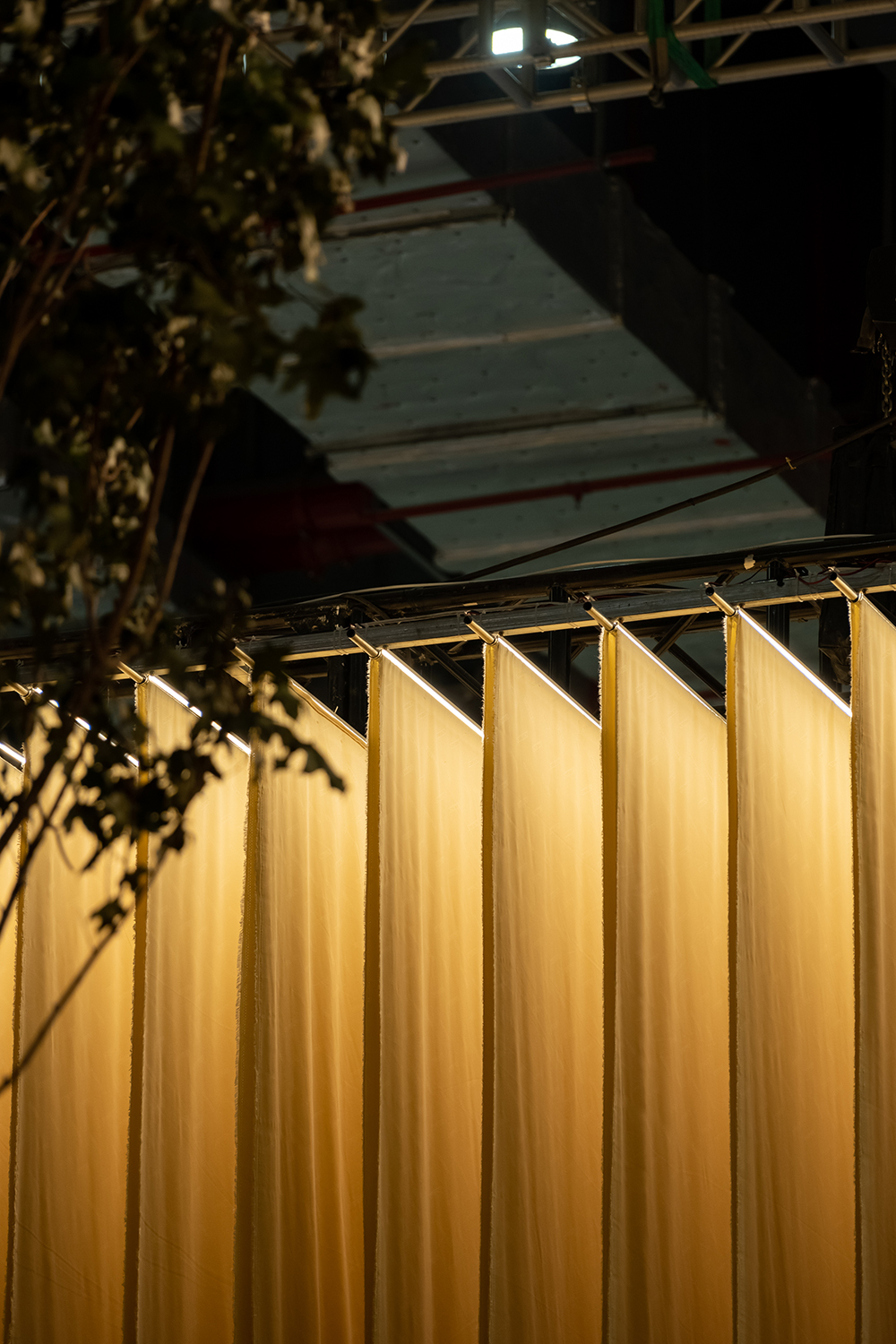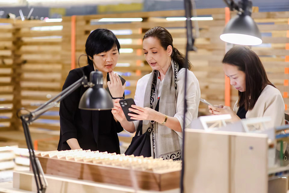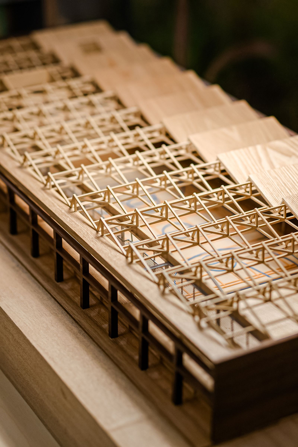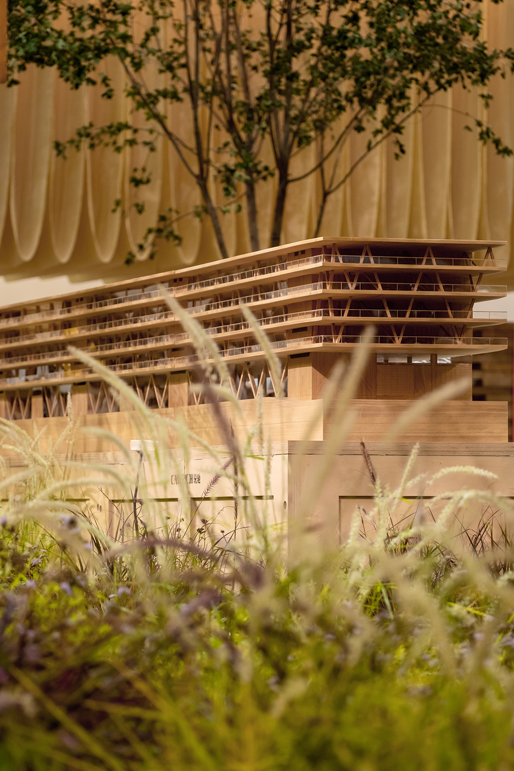 建筑模型的展台,即是运输时所装载的木箱本身,展览结束后模型将被原箱寄回。展台灯具将运回北京园区的工作营,而营造周圈氛围的线性灯带将用于嘉兴工厂的辅助空间照明。