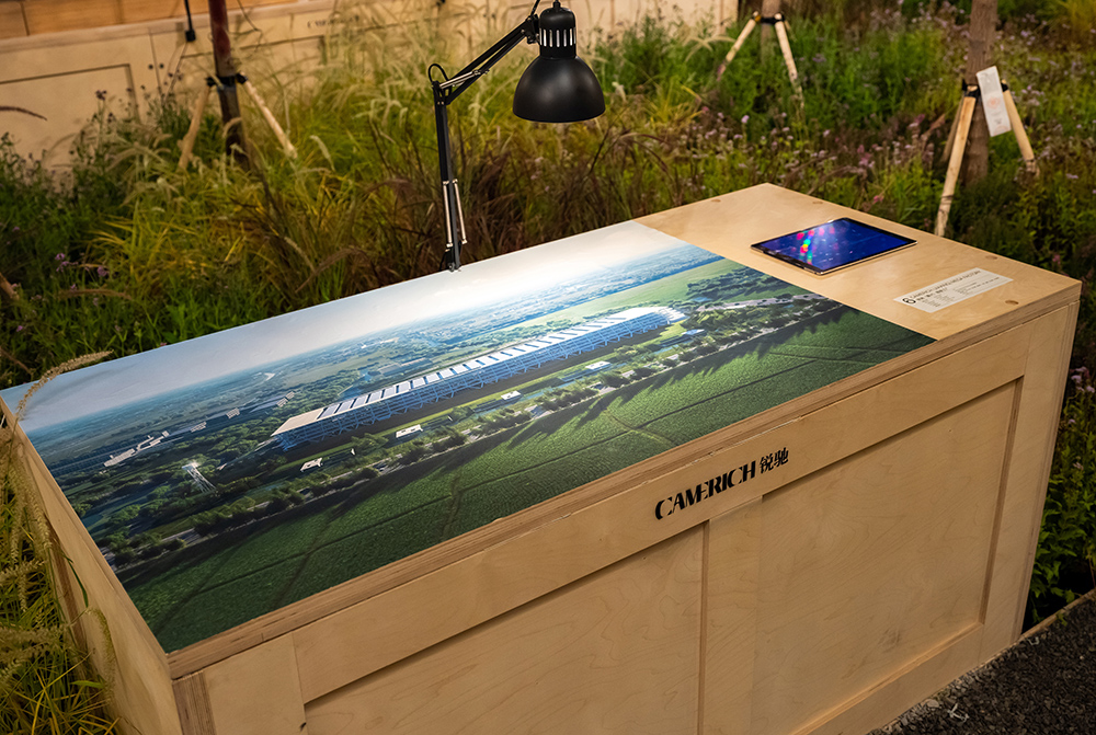 锐驰践行以「可持续」为核心的一贯原则,展陈设计的诸多细节都体现了品牌在设计、制造、回收和物流的全链条中对于环保承诺的持续践行;展览讲述了企业在北京/嘉兴两地的园区规划方案,并传递出这种「南北布局」思路背后所体现的对自然环境的尊重,和以人为本的核心考量。