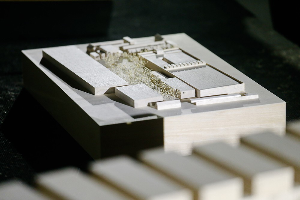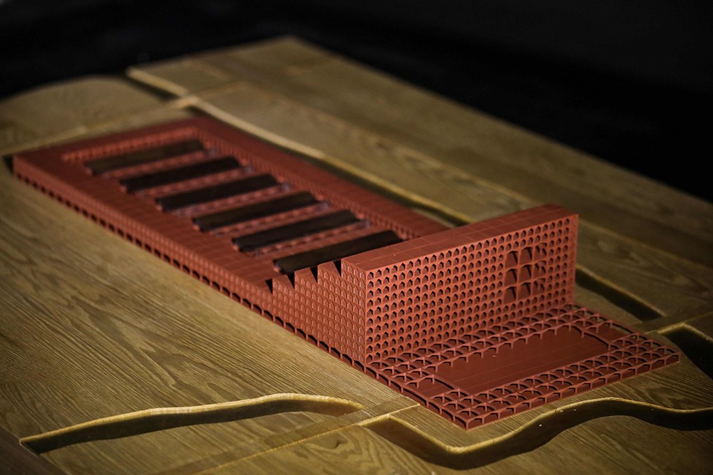 沿着一条曲线和缓的走廊望去,在如同峡谷岩洞的画廊中,锐驰北京总部基地和嘉兴工业园区两个建筑模型一览无余,它们分别由锐驰与标准营造、如恩设计合作完成,这也是其对外初次亮相。