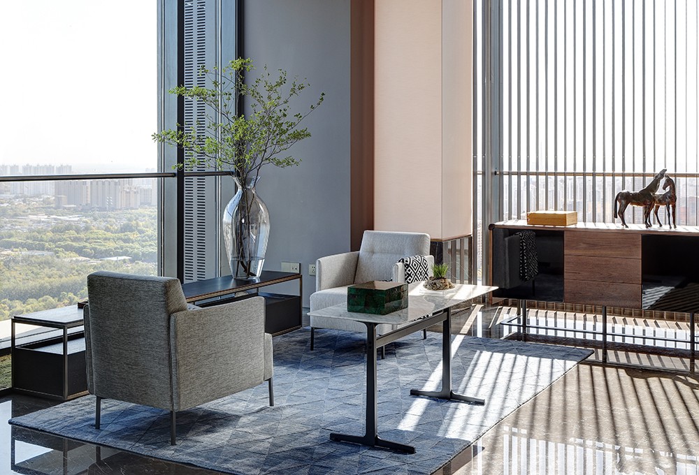 当木、石、皮、布、金属、瓷器,各种元素遇上现代智慧,居家空间就成为了人们身心与万物归一的精神属地。这即是达美中心“万物·云之云安”项目的设计初衷,更十分契合著名家具品牌CAMERICH锐驰“守本归真、至简至美”的理念
