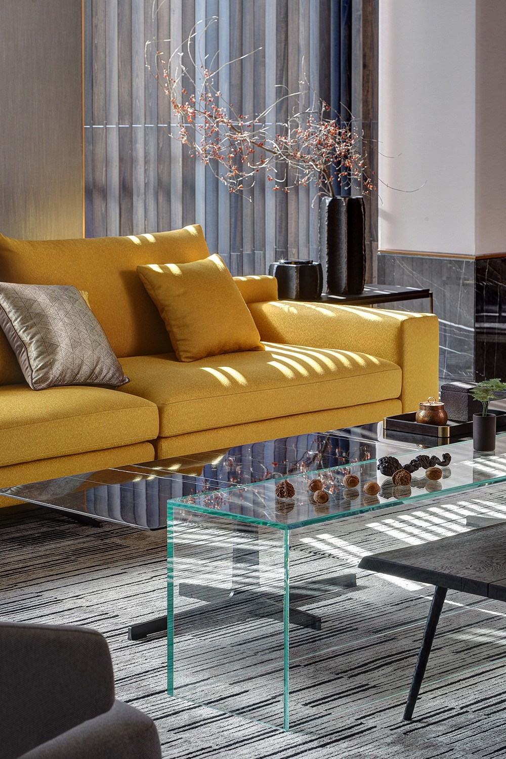 设计师赵树先生说:“作为万物·云之云安项目室内设计的负责人,我力求让每一件物品都处于恰当的位置,和谐依存。空间是有限的,但意蕴却可以无限。家具、饰品虽然形态不同,但我希望它们都能让人处处感受到满溢的清澈与自然之美。”