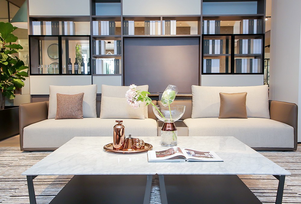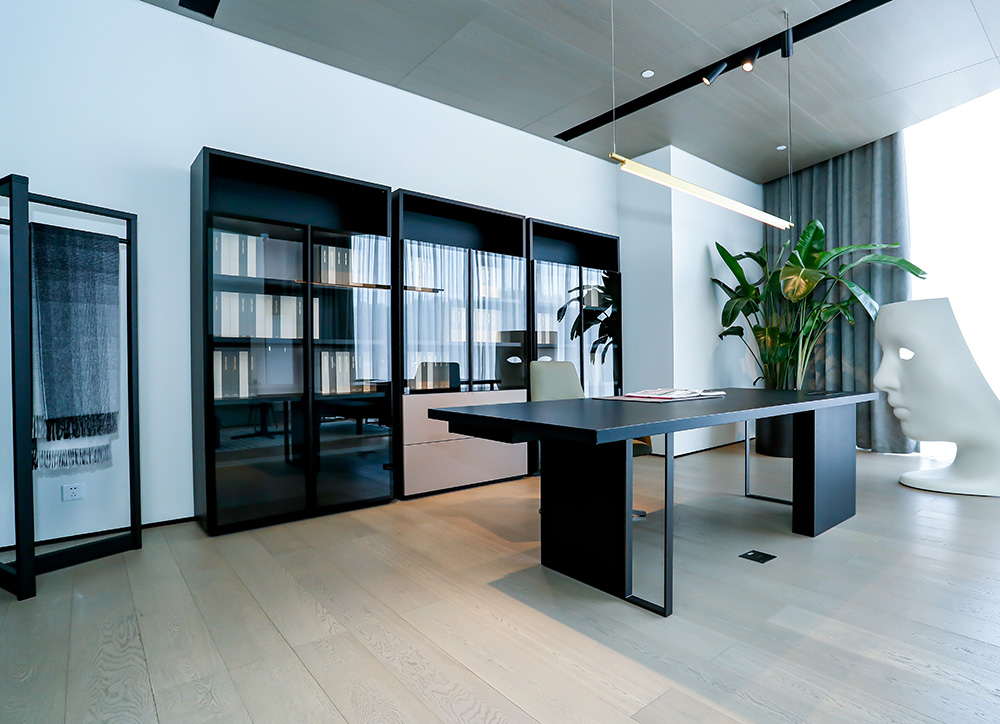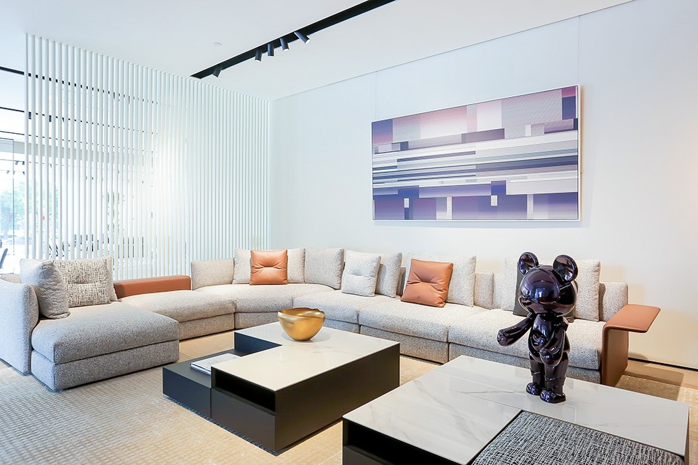 内部的体验空间从布局到细节,都将商业空间场景化、生活化,仿佛注入了一个个家庭故事,将空间串联,从会客厅到起居室,从书房到卧室,不论是大空间的氛围感还是小空间的功能性,以空间体验带动家具展示,锐驰将更加国际化、前沿性、艺术性、设计感的生活方式带给体验者。
