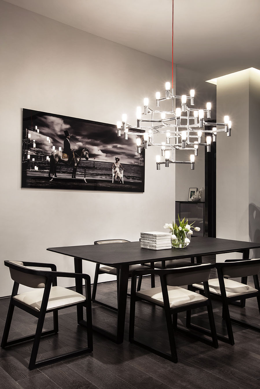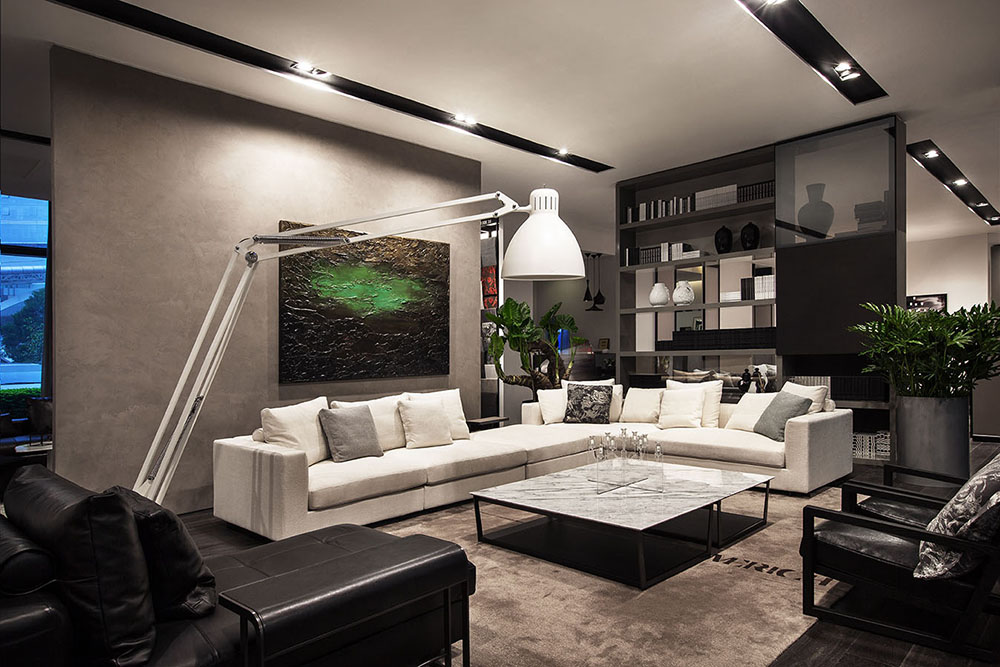 走进锐驰琶洲店,无论是空间隔断、产品陈列、还是软装配饰,处处都能体会到艺术手法运用的精妙之处。灵动轻巧的环保隔断门将店面分成了客厅、餐厅、卧室等空间,各空间风格既自成一体又完美融合。CASA沙发、HANNA江南平台装点的客厅简洁素雅;VESSEL书桌与AVALON沙发相映成趣,使得书房宁静而又充满生机;VESSEL餐桌与MING餐椅共同营造了家庭聚餐的温馨时刻。店内墙面均采用意大利威尼斯传统手工艺术漆工艺,在柔和灯光的映衬下,自然精美且充满历史的沉淀感。约尔迪﹒戈麦斯等国际知名艺术家的现代画作、造型各异的Nemo Cassina及FontanaArte等品牌灯具、以及锐驰的明星产品共同营造出时尚摩登的店面风格。